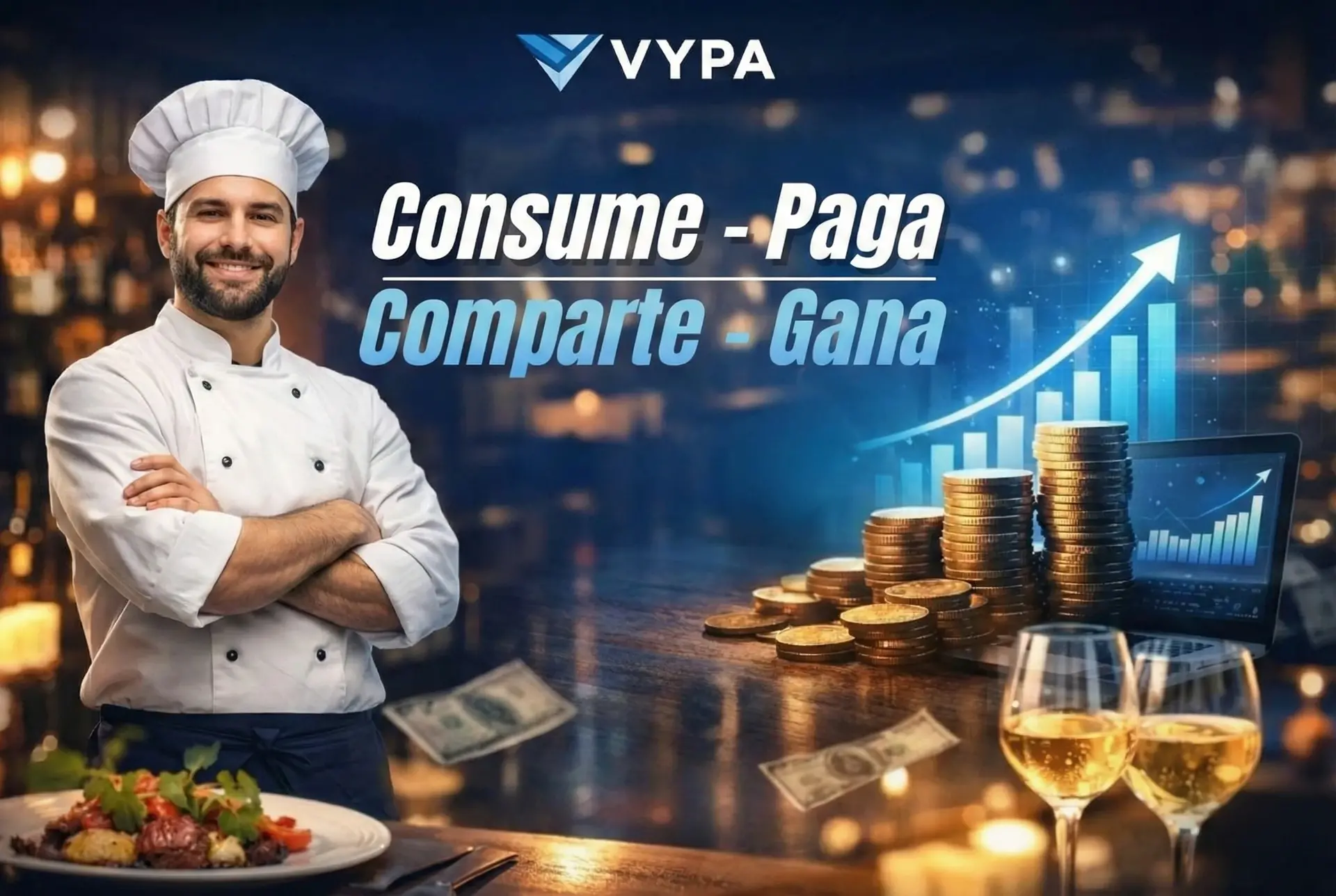 Los restaurantes asociados a VYPA incrementan su clientela por la visita de nuestra red de miembros interesados en consumir allí, por la retribución que obtienen.